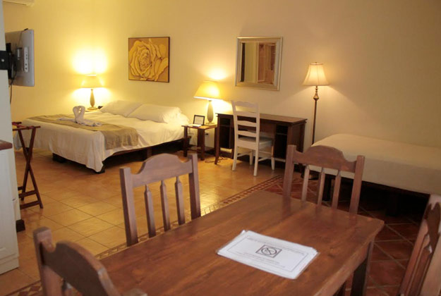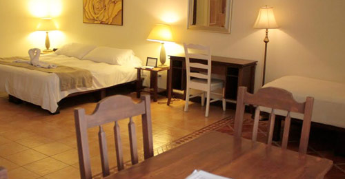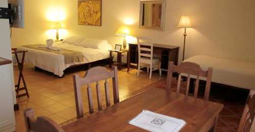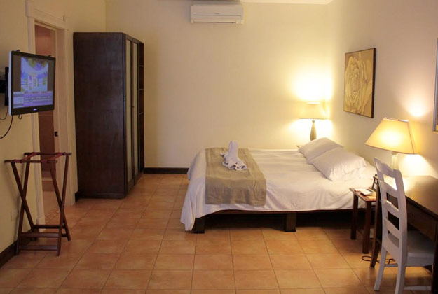 1 King size bed with comfort gel pillow top, 1 twin bed. Beautiful, wide verandah, frigobar. 42 inch flat screen TV. 1 bath tube for 2 people and 1 rainfall shower. Beautifully tiled floors. Air conditioner, Wi Fi and cable access for your personal computer. European 220 volt and American 110 volt. In-room telephone with free international calls and internet access.