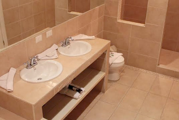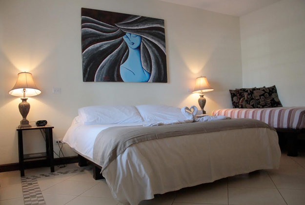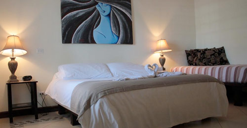 1 King size bed with comfort gel pillow top, 1 twin bed. Beautiful, wide verandah, frigobar. 42 inch flat screen TV. 1 bath tube for 2 people and 1 rainfall shower. Beautifully tiled floors. Air conditioner, Wi Fi and cable access for your personal computer. European 220 volt and American 110 volt. In-room telephone with free international calls and internet access.