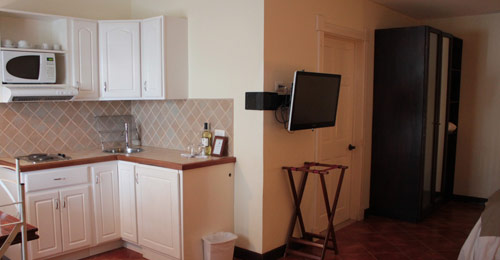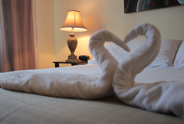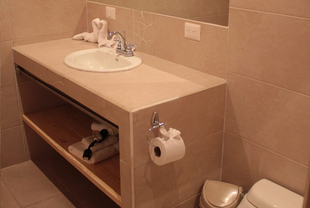 1 King size bed with comfort gel pillow top, 1 twin bed. Beautiful, wide verandah, frigobar. 42 inch flat screen TV. 1 bath tube for 2 people and 1 rainfall shower. Beautifully tiled floors. Air conditioner, Wi Fi and cable access for your personal computer. European 220 volt and American 110 volt. In-room telephone with free international calls and internet access.