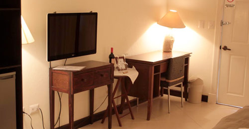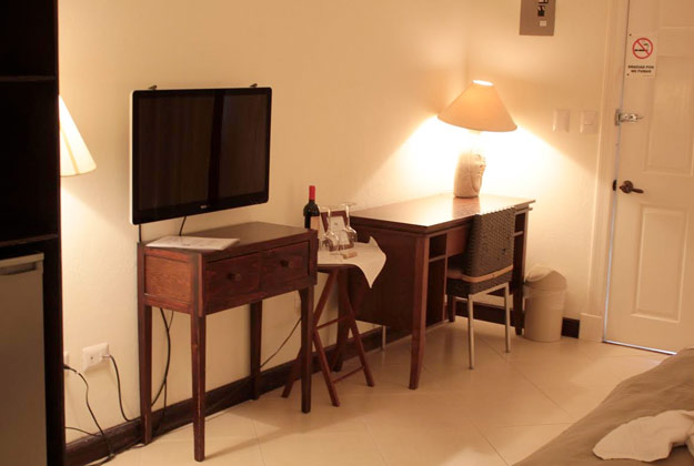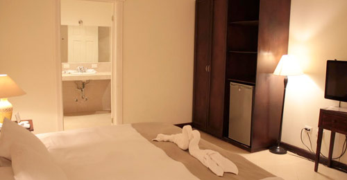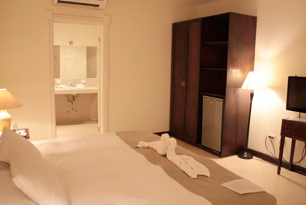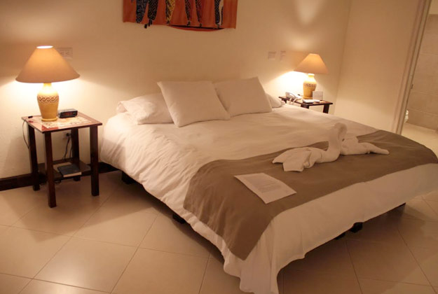 1 King size bed with comfort gel pillow top. Beautiful, wide balcony, frigobar. 28 inch flat screen TV. Large bath with rainfall shower. Beautifully tiled floors. Air conditioner, Wi Fi and cable access for your personal computer. European 220 volt and American 110 volt. In-room telephone with free international calls and internet access.