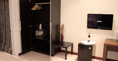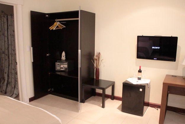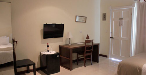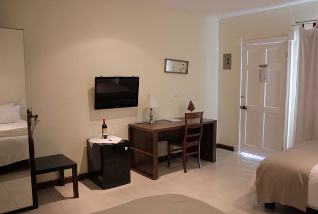 2 queen size bed with comfort gel pillow top. Beautiful, wide verandah with table and 2 chairs, frigobar. 32 inch flat screen google tv by sony TV with internet included . Large bath with rainfall shower. Beautifully tiled floors. Air conditioner, Wi Fi and cable access for your personal computer. American 110 volt. In-room telephone with free international calls and internet access.